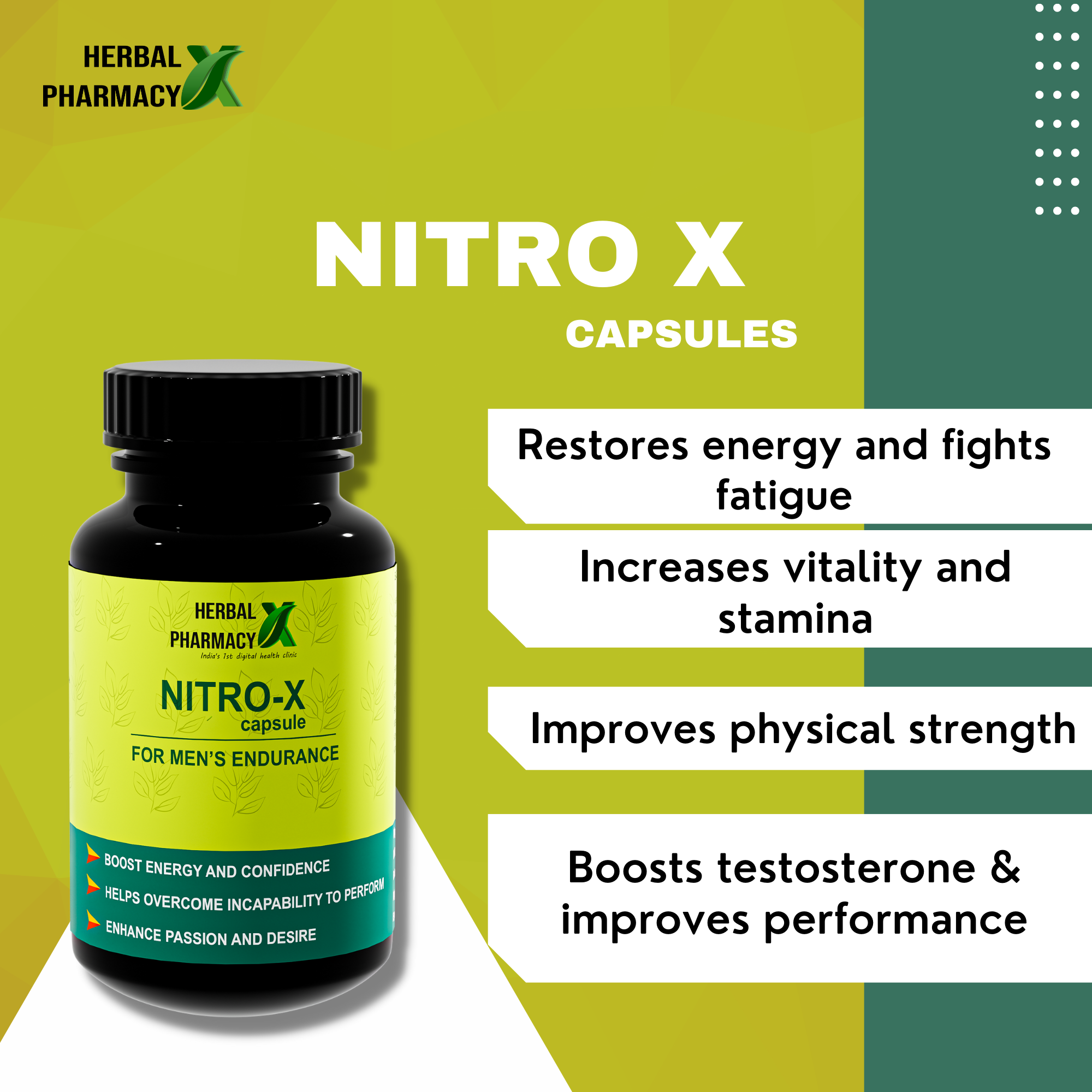 Herbal Pharmacy NITRO X Performance Capsule (Ayurvedic Stamina Booster) (60 Capsules)